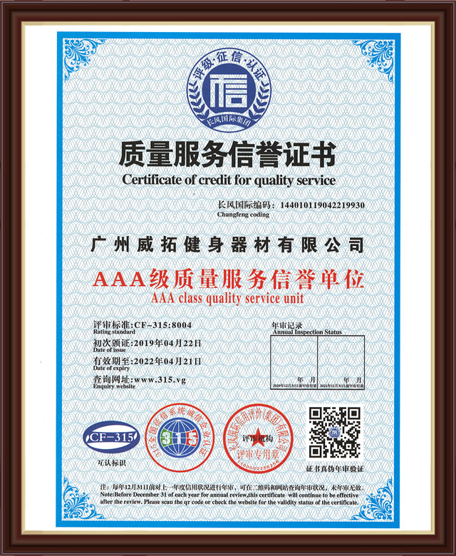 質量服務信譽證書